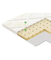 Натуральный материал, получаемый из сока каучукового дерева. Обладает такими уникальными свойствами, как гипоаллергенность, гигиеничность, вентилируемость, долговечность и обеспечивает упругую поддержку позвоночнику.